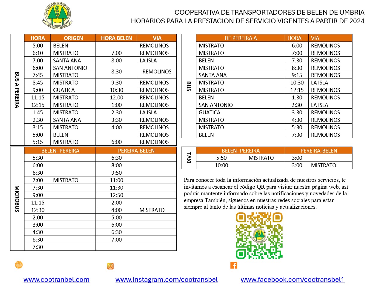 Cootransbel – Horarios de Rutas
